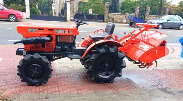 KUBOTA B 7001. 3 cilindros. 4×4.. Con Rotavator Tracción a las 4 ruedas. Motor diesel de 3 cilÃndros, refrigerado por agua, arranque por bateria. Velocidades cortas y largas. Toma de fuerza. Apero que dispone: Rotavator.